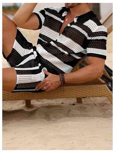 Why Choose Verdusa Men's Knitted 2 Piece Outfitd Short Sleeve Hollow Out Button Up Shirt and Shorts Set?