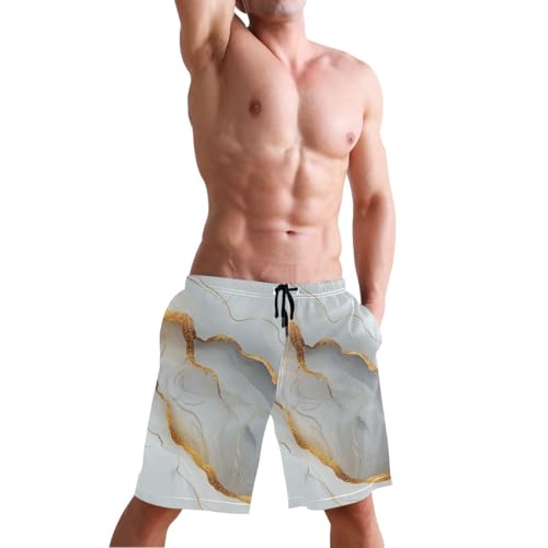 GuoChe Marble White White Shorts Casual Stretch Mens Swim Shorts with 8”/ 9” Long Surfing