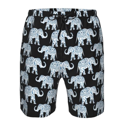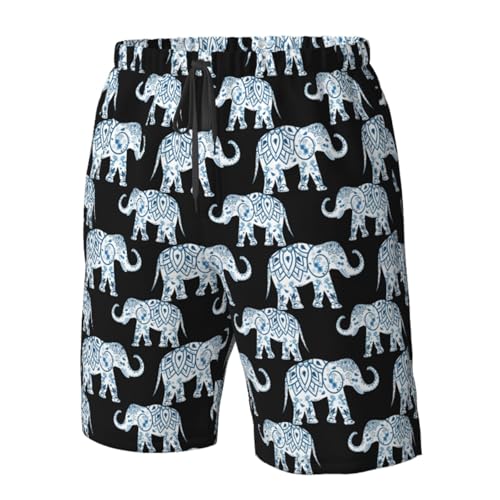 Men's Beach Shorts Swim TrunksFun Patterns Elephant-Blue Black Print for Surfing Running Summer Vacation