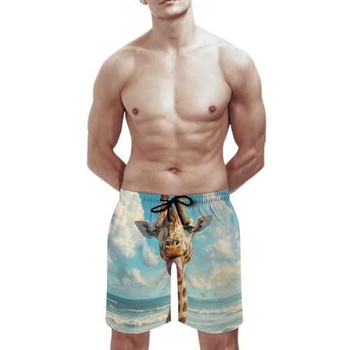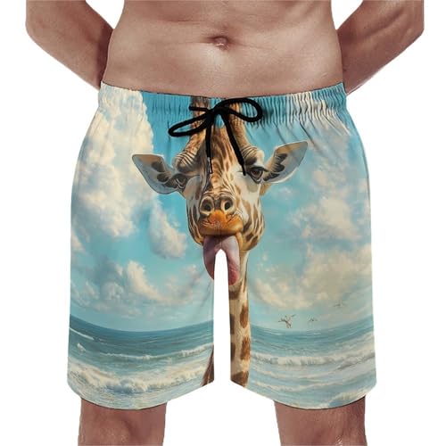 Funny Giraffe Mens Swim Trunks rapid Dry Board Shorts Beach Swimwear Bathing Suits