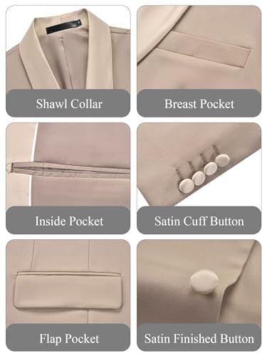 • 【Luxurious Tuxedo Elegance】Classic men’s tuxedo suit with satin-finished lapel, satin shawl collar (2 refined front buttons), and 4 up-to-date satin cuff buttons. Ideal for black-tie events, upscale weddings, and corporate galas—exudes luxury and timeless sophistication.