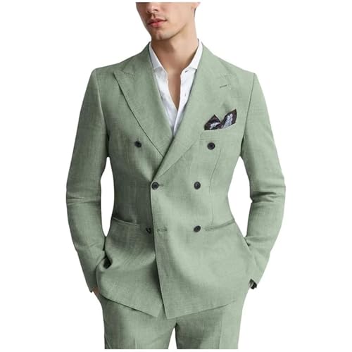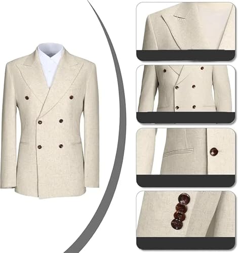 in-demand ! Men's Linen 2-Piece Suit - Slim Fit Double Breasted Tuxedo for Wedding & Formal Events
