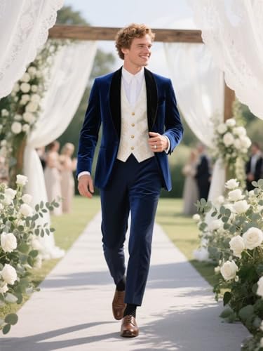 More information about Wehilion Men's 3 Piece Velvet Tuxedo Suit Slim Fit Shawl Collar Blazer for Performances Party Wedding Jacket Vest Pants