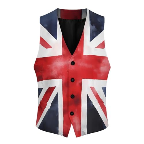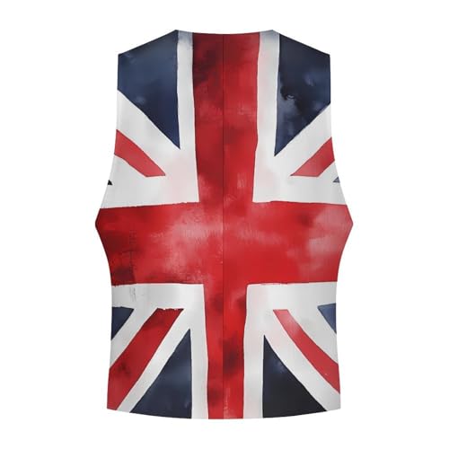 Union Jack British UK Flag Watercolor Suit Vest for Men Waistcoat Dressy V Neck Button Down Sleeveless Business Jacket Coat