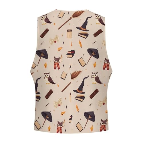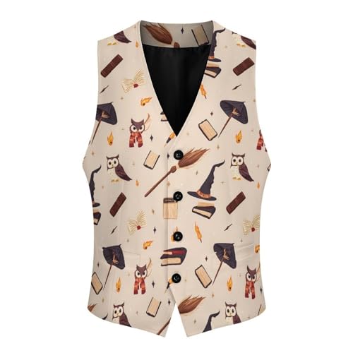 Wizard Hat Books Suit Vest for Men Waistcoat Dressy V Neck Button Down Sleeveless Business Jacket Coat