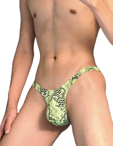 Men's Sexy Thong Underwear Bikini Briefs Low Rise G String with Bulge Pouch T Back Leopard Print Lingerie Panties
