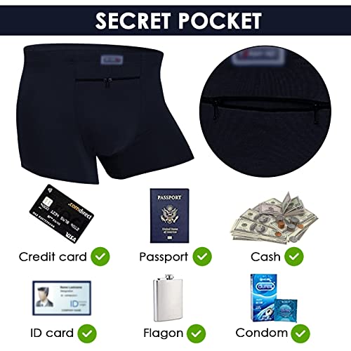 Fabric type: 100% CottonCare instructions: Machine WashOrigin: ImportedMens underwear is made of silky-soft modal fabric, breathable and plush.Travel underwear with a secret stash zippered pocket, can keep your valuables safe, such as cash, credit cards, passports, IDs, insulin pump, condoms, and CDC vaccine cards, or prevent pickpocketing.The anti theft underwear is made of premium zipper, which is smooth to use without jamming, no magnets, not easy to rust.Ideal secret stash pouch for traveling, workout, and electronic music festivals, allows you to protect your valuables better, can totally enjoy your journey all the time.Colour: Black; Package: 2 Pack. (Note: Please choose the appropriate size according to the size chart in the picture.) Perfect for everyday use. first-class materials and excellent craftsmanship ensure long-lasting durability.