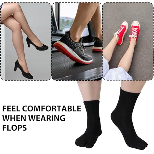 6 Pairs Tabi Flip Flop Socks, Elastic Cotton Tabi Split Toe Socks Wicking Sandal Socks for Women Men (Black)