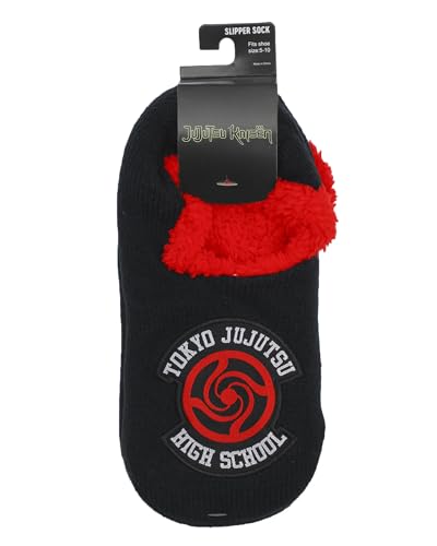 Fabric type: 60% Polyester, 40% AcrylicOrigin: ImportedOuter material: PolyesterClosure type: No closureAnime-Inspired Design: Immerse yourself in the Jujutsu Kaisen world with slipper socks featuring Tokyo Jujutsu High School's logo and name in white against a black backgroundFuzzy Red Cuffs: The socks are adorned with fuzzy red cuffs, adding a touch of warmth and style to your loungewearPremium Comfort: Crafted with great polyester and spandex materials, these slipper socks ensure maximum comfort and durability, making them ideal for lounging or casual wearUniversally Fitting: Designed to fit men's shoe sizes 5-10, these slipper socks offer a versatile and plush fit for a wide range of foot sizesAnime Fan Essential: Perfect for Jujutsu Kaisen enthusiasts, these slipper socks combine fandom with practicality, making them an essential addition to any anime lover's collection Perfect for everyday use. first-class materials and excellent craftsmanship ensure long-lasting durability.