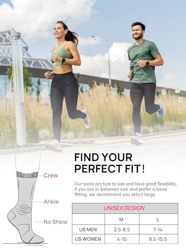 in-demand ! TRENDOUX Compression Running Socks for Women: Men Athletic Cushioned Crew Socks Size 3-14 Breathable Moisture Wicking 3Pairs