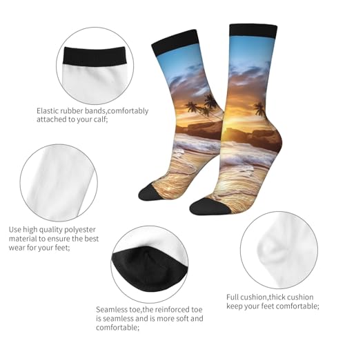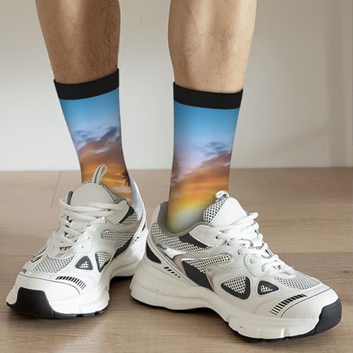 Crew Athletic Socks Moisture-Wicking Running Sock Beach Sunset Landscape Casual Calf Socks for Men Women