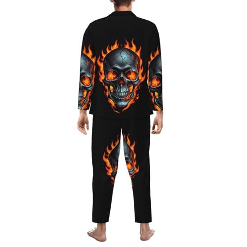 More information about Mens Pajamas Set - Flame Metal Skull Long Sleeve Sleepwear Nightwear Pjs Lounge Pajama Sets For Men