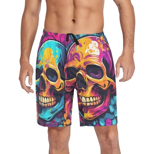 in-demand ! Skull Graffiti Style Men's Sleep Shorts Pajama Pants with Side Pockets Elastic Waistband Drawstring