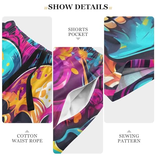 More information about Skull Graffiti Style Men's Sleep Shorts Pajama Pants with Side Pockets Elastic Waistband Drawstring
