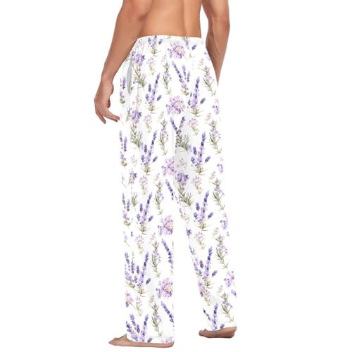 Men's Lavender Flowers Pajama Pants with Pockets - Straight Fit Cotton Sleep Bottoms for Lounge & Nightwear#310