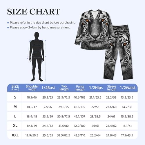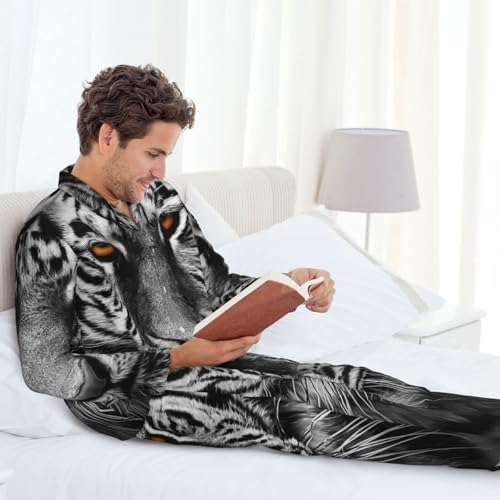 Siberian Tiger Closeup Mens Pajamas Set Button Down Sleepwear Set Long Sleeve Loungewear With Pockets