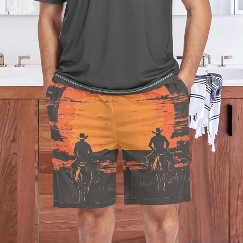 in-demand ! Men's Short Pajama Bottoms Retro Cowboy Sundow Home Casual Sleep Pants