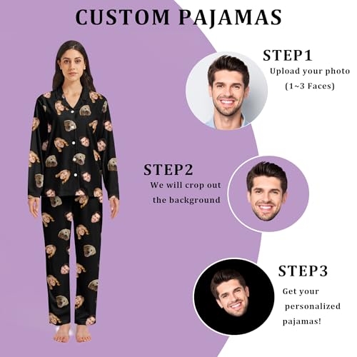 Fabric type: 100% PolyesterOrigin: ImportedHow to Custom Face Pajamas: Click on the Customize Now and upload the photo of yourself, a loved one or adorable pets, our design team will crop out the background and print the face on your personalized pajamas. Create your own pajamas now and make it a fun way to show your affection and love.Funny Couple Gift: Make a one-of-a-kind gift with our custom sleepwear. Whether it's to celebrate a special holiday or attend a party, this personalized pajama is definitely a treasured gift for your loved one, like boyfriend, girlfriend, mom, husband, wife, pet, and best friends. Such a fun gift and cozy loungewear that can bring surprise and joy to your relatives.Ideal for Any Occasion: These custom pjs make a wonderful gift for the holiday season, suitable for Valentine's Day, Anniversaries, Mother's Day, Family Parties, Halloween, Christmas, carnival, cosplay costumes, birthday, and New Year. Delight your loved ones with a thoughtful, customized present that will surely bring a lot of smiles and laughter.Various Sizes & Colors: Available in various sizes for both men and women, from S to 4XL, our customizable pajamas ensure a perfect fit for everyone. Choose from a range of colors and patterns to match your personality and preferences. These creative pajamas are also great for dog moms and cat dads alike!Cozy & Durable Fabric: Made from high-quality, skin-friendly fabrics, our custom picture pajamas are incredibly soft and cozy, ensuring you stay cozy during any occasion. Whether you're lounging at home or a fun family event, this custom pajamas will make it even more memorable. Perfect for everyday use. supreme materials and excellent craftsmanship ensure long-lasting durability.