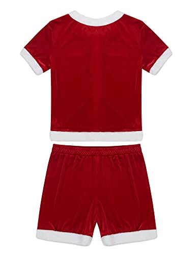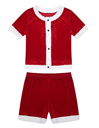 in-demand ! Moily Men's 2Pcs Velvet Christmas Santa Suit Short Sleeves Button Down Tops with Loose Panties