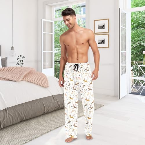 Mens Cotton Pajama Pants Sleep Lounge Pj Bottoms Sleepwear with Pockets Drawstring S Dachshund Dogs Run