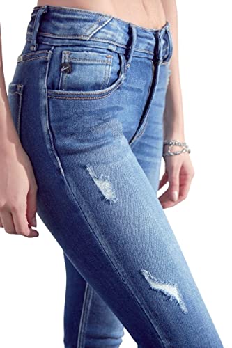 Why Choose Kan Can Women's Mid Rise Ankle Skinny Jeans (Medium Blue (Rise 9.25"/Inseam 27") KC2508M, 27)?