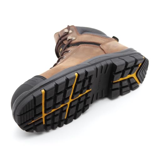 Men's Work Boots, Crazy Horse Leather, Steel Toes Mens Work Shoes, Non Slip Lace Up Protective Shoes, 6 Inch, Anti-Smashing,Anti-Fatigue (AT508, Brown)