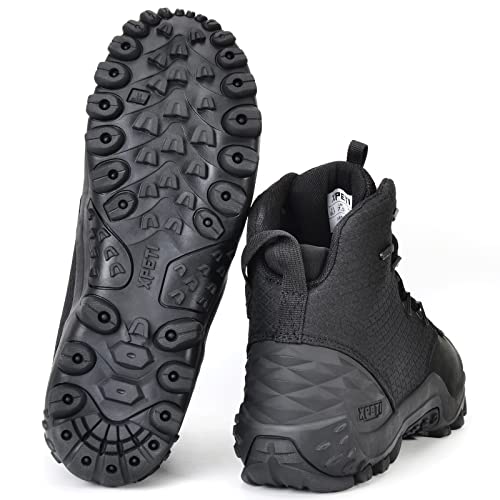 Sole material: RubberOuter material: RubberClosure type: Lace-UpWater resistance level: WaterproofWATERPROOF & plush - X-Dry Membrane waterproof and moisture-wicking mesh lining Keep your feet dry and comfortable. Selected high grade nubuck leather upper .Trendy dimensional abrasion resistance fabric.ADVANCED TECHNOLOGY - Molded TPU heel stabilizer. Removable X-Fit high rebound open-cell foam footbed for Dynamic arch support and underfoot cushioned comfort.DURABLE & PROTECTIVE - Rubber Toe cap protection.Integrated hided EVA midsole.Resilient internal “Y shape” nylon shank provides torsional stability for a secure rideRUBBER SOLE - Super aggressive grip rubber outsole with 7mm multi-directional lugs provides higher-traction grip & stability, applicable to various terrain.FASHION & PRACTICAL - Tactical design with urban casual fashion style, make it practical to outdoor and daily use.This military boots work great in hiking, work, tactical, army, hunting, motorcycle and outdoor activities Perfect for everyday use. first-class materials and excellent craftsmanship ensure long-lasting durability.