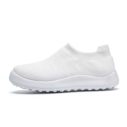 Generic Fashion Summer Men Sports Shoes Flat Bottom Lightweight Slip On Flying Woven Mesh Breathable relaxing Solid Color Casual Style Sneaker Boots for Men Blvd (White, 9)