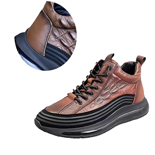 RZDYSQ Men's Cowhide Crocodile Print Sneakers, tender Leather Height Lifting Non-Slip Casual cozy Shoes, Men's Casual Sneakers (Black,US-8.5)