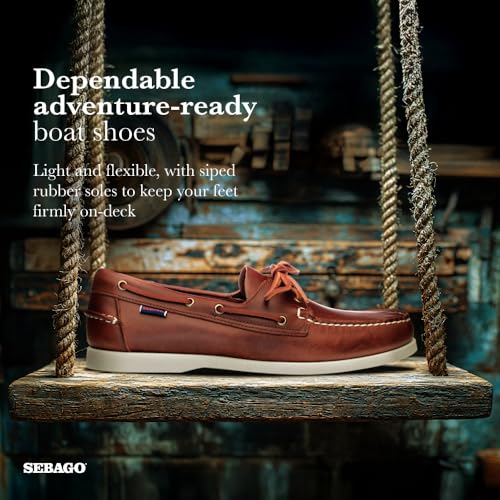 in-demand ! Sebago Portland Waxed Boat Shoes - Handsewn Waxed Leather Moccasins with Leather Sock Lining and Non-Marking, Slip-Resistant Rubber Outsoles
