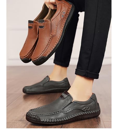 Closure type: Pull-On【Hand-stitched and crafted】with exceptional leather. All of our products are handmade in Brazil by skilled artisans who have extensive expertise in the precise manufacturing techniques needed to produce the products we offer.【Solid Support】: non-slip flexible rubber drive sole and shock absorbing design provides superior comfort, solid support and walking traction. Its butter-soft feel molds to wear. Walk or stand comfortably all day long.【Comfort & Softness】 Applying the most advanced comfort technology on the market. Fully padded insole for unrivaled comfort and fit. Cushioned insole and breathable leather upper provide superior support for your performance.【Multi Occasion】High-end soft men's loafers are ergonomically designed to provide superior cushioning and comfort. Soft insole relieves foot fatigue, suitable for work, walking, traveling, driving, business meetings and other occasions.【finest service】If you are confused about product quality or have any other issues, we will give you the best attitude and we are happy to solve the problem for you. If you are not satisfied or suitable for the product, we will give you a satisfactory answer. Perfect for everyday use. High quality materials and excellent craftsmanship ensure long-lasting durability.