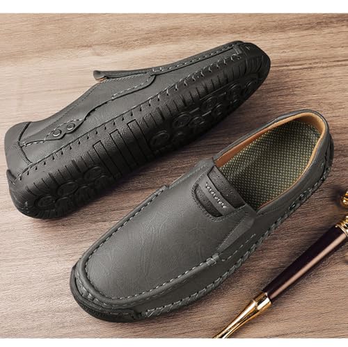 Men's timeless Vintage Leather Hand Stitched Flat Loafers Outdoor snug Non-Slip Lightweight Driving Casual Shoes
