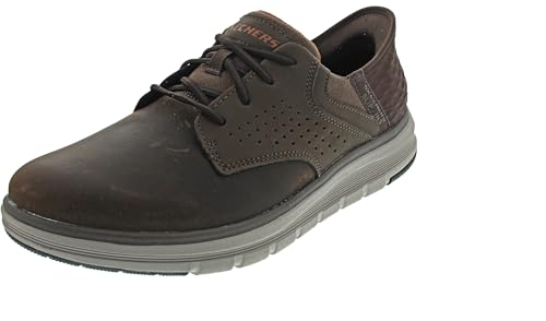 Origin: ImportedSole material: RubberOuter material: LeatherClosure type: Lace-UpSkechers Hands Free Slip-ins heel panel for an easy fitSkechers Air-Cooled Memory Foam cushioned comfort insoleRelaxed Fit for a roomy comfort fit at toe and forefootSkechers Goga Mat Arch supportive cushioningCharcoal infused insole helps neutralize potential odor faultless for everyday use. first-class materials and excellent craftsmanship ensure long-lasting durability.