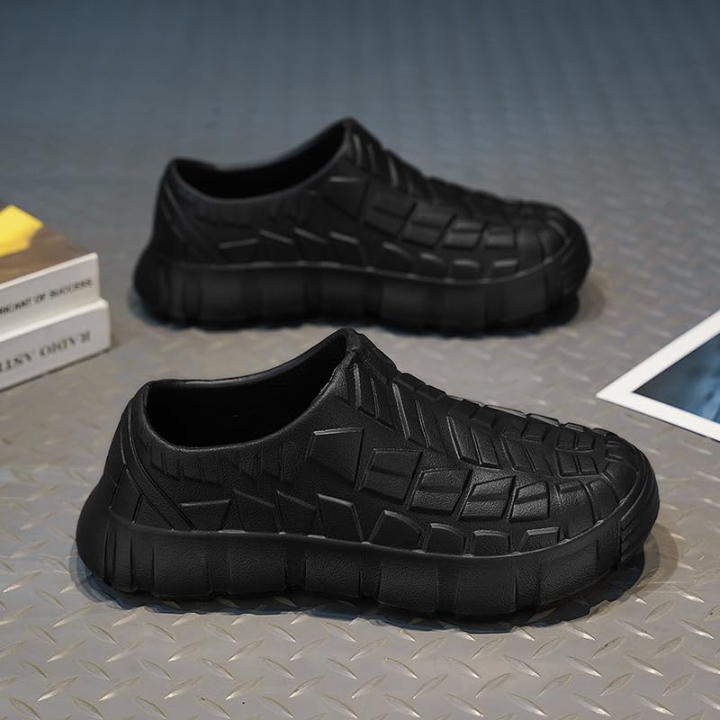 Sole material: Eva FoamOuter material: MeshClosure type: Lace-UpWater resistance level: Not Water ResistantVERSATILE DESIGN: Slip-on casual clogs with textured rubber sole suitable for both indoor and outdoor use, perfect for walking and daily activitiesWATERPROOF CONSTRUCTION: solid black rubber material keeps feet dry and protected in wet conditions while maintaining breathabilityCOMFORT FEATURES: Lightweight construction with cushioned footbed provides all-day comfort and reduces foot fatigueTRACTION PATTERN: Distinctive geometric tread design on outsole offers reliable grip on various surfaces while being easy to cleanEASY WEAR: Convenient slip-on style with wide opening allows quick on-off, making these shoes perfect for casual everyday use Perfect for everyday use. first-class materials and excellent craftsmanship ensure long-lasting durability.