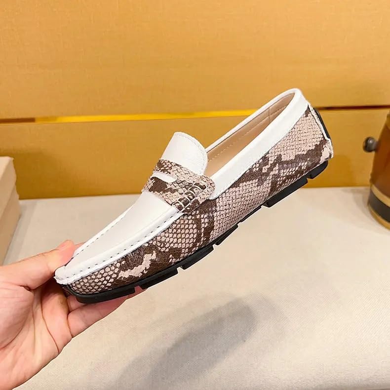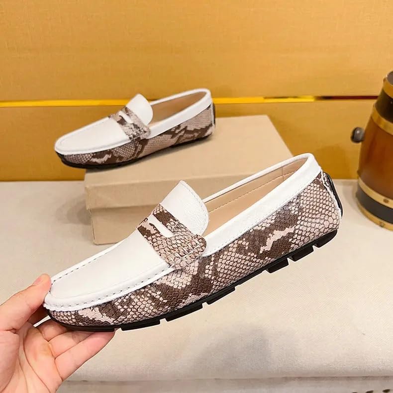 More information about Men's Loafers Shoes Genuine Leather Two Tone Crocodile Print Manual Stitching Driving Loafers Anti-Slip Flat Heel Lightweight vintage Slip On