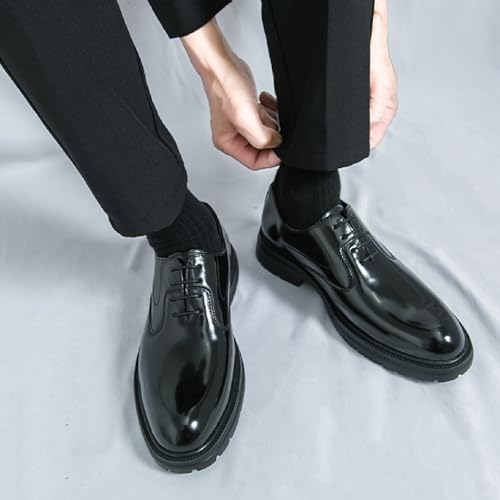 Men's Patent Leather Low Top Platform Loafers Fashion Shiny Pointed Toe Slip On Lug Sole Non-Slip Business Formal Shoes Non-Slip Party Dating Prom Dress Oxfords
