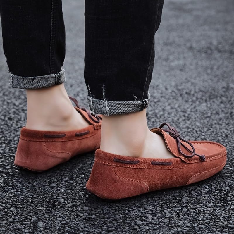 in-demand ! Mens Loafers Square Toe Solid Color Suede Vamp Boat Shoes Flat Heel Lightweight Flexible Casual Slip-ons