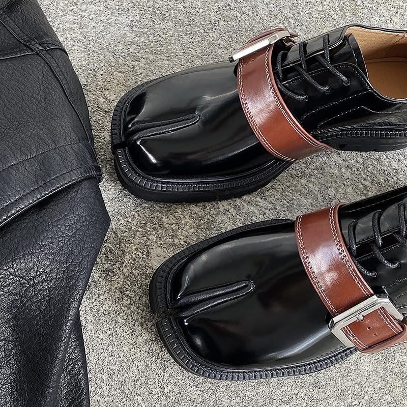 More information about ZQW Tabi Shoes for Women Men Patent Leather British Loafers Buckle Lace-Up Slip-On Split-Toe Shoes for Fashion Streetwear