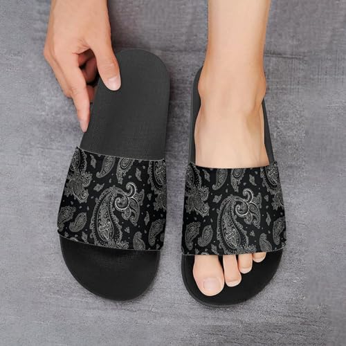 Black Paisley Womens Slide Sandals Non Slip Summer House Slippers for Girls Slip-on Flip Flops
