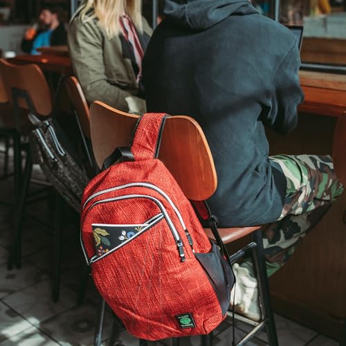 DIME BAGS Backpack with Padded Laptop Compartment, Durable Hempster Material, 11 Storage Pockets, For Travel & Daily Use, City Dweller (Red)