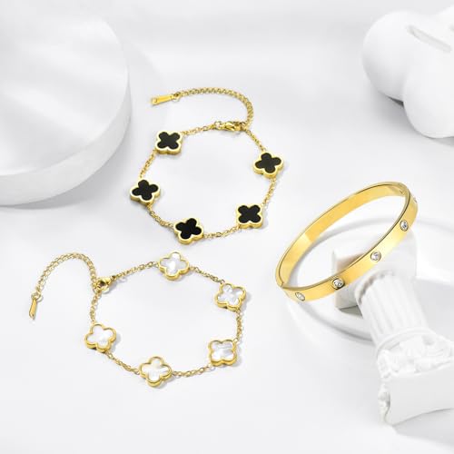 Clover Bracelet appreciate Bangle Stack Set 18K Gold Plated Four Leaf Clover Bracelet Black and White easy Cute Friendship Bangle Bracelets for Women Trendy Holiday Gifts