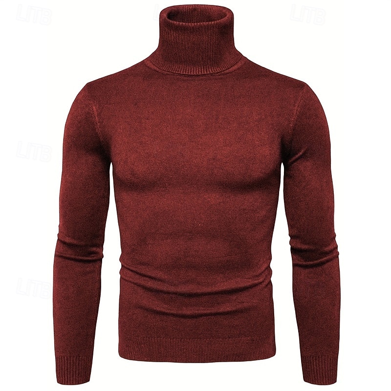 Why Choose Men's Pullover Sweater Jumper Knit Sweater Mens Turtle Neck Jumper Ribbed Knit Regular Knitted Plain Turtleneck Fashion Casual Daily Wear Date Clothing Apparel Fall & Winter Wine caramel S M L?