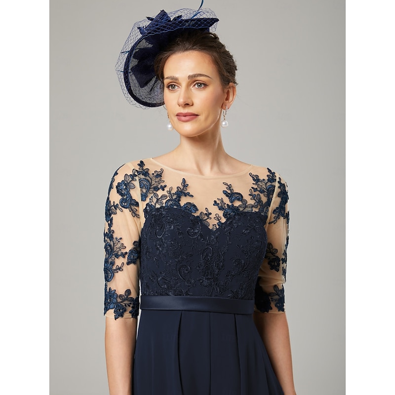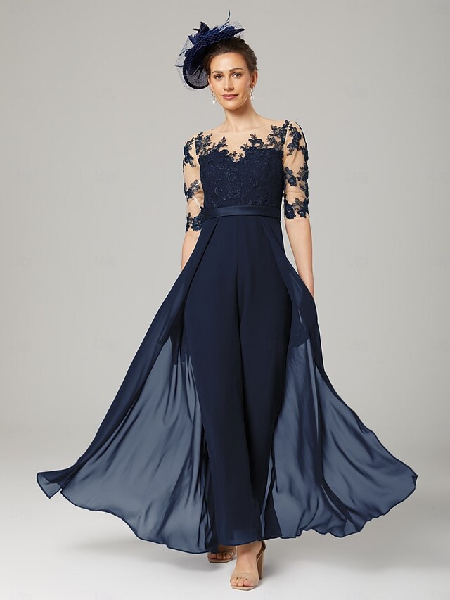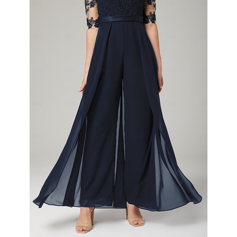 More information about Jumpsuit Mother of the Bride Formal Wedding Guest Elegant Party Scoop Neck Ankle Length Chiffon Lace 3/4 Length Sleeve with Appliques