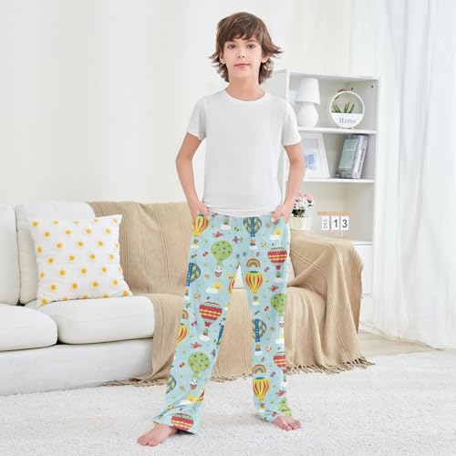 Hot Air Balloon Panda Boys Long Pants Soft Trousers Elastic Waist Kids Lounge Bottoms with Pockets S-XL 4