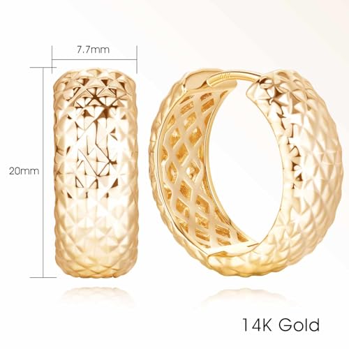 • 【Elegant Mesh Pattern】The intricate mesh pattern of the 14k gold hoop earrings for women adds a modern twist to these unique hoop earrings, making the gold plated earrings for sensitive ears hypoallergenic earrings for women a fashionable accessory for any occasion.